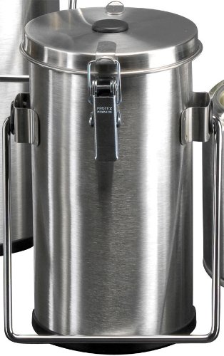 - Features a corrosion-resistant, stainless steel exterior with a carrying handle and vented lid which is secured by two toggle clamps